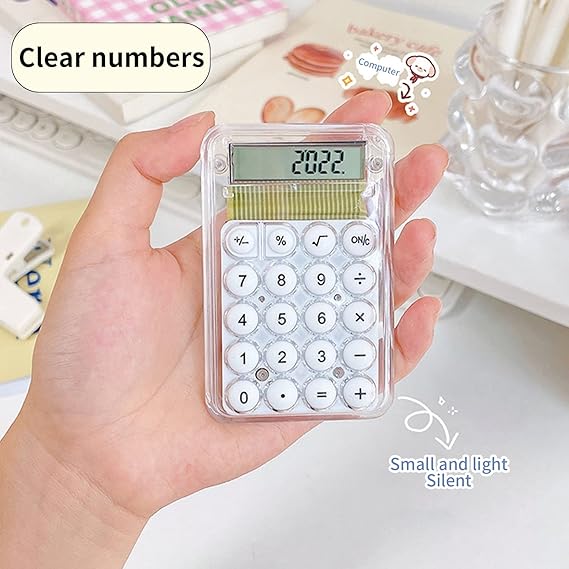 "👉STYLISH CALCULATOR – This cute calculator is available in 5 colors. The cute shape is loved by children and the long life of the calculator does not require frequent battery replacement.