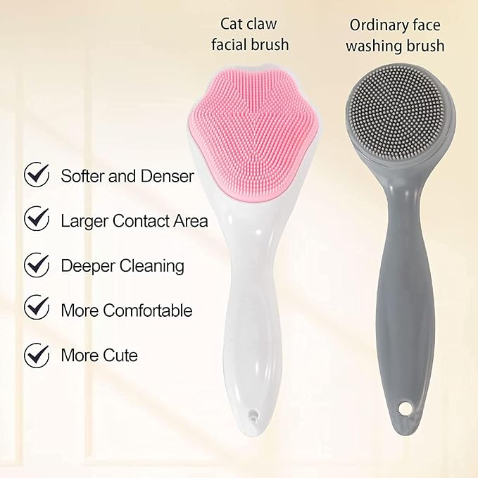 "FEATURE: Silicone face scrubber design with cat paw shaped brush head and soft food grade silicone bristles, gentle remove makeup, dead skin, blackheads and remove unwanted oils leaving a healthy shine on the face, bring you comfortable cleaning experience